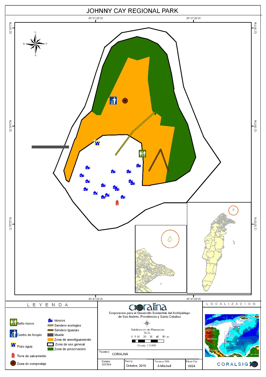 Johnny Cay es un pequeño islote (cayo) oceánico cercano a la isla de San Andrés declarado Parque Natural Regional en el año 2000. Localizado sobre el costado norte, y caracterizado por poseer ecosistemas marinos y costeros de gran importancia como las playas de arena, fondos arenosos, parches arrecifales, arrecifes de coral y un área terrestre con diversidad de vegetación y usos permitidos, donde predominan las zonas de conservación y zona general de uso múltiple. Actualmente es uno de los sitios turísticos más visitados en la Reserva de Biosfera Seaflower. Esta área protegida tiene una extensión de 44 hectáreas pueden disfrutar del parque 854 visitantes de manera simultánea al día de acuerdo a su capacidad de carga, lo cual lo convierte en una importante fuente de empleo directo para aproximadamente 100 familias de las islas. Coralina trabaja de la mano de la comunidad de prestadores de servicio turístico que laboran en el parque, los cuales llevan 30 años (incluso antes que fuera parque), y se les tiene vinculado en los procesos de manejo de residuos sólidos, educación ambiental, conservación de la cultura raizal y mejoramiento de la infraestructura física.